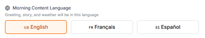 This has been one of the most requested features since we started. Families around the world wanting their children to hear personalised morning stories in their native language. Bilingual households. Expat families. Parents wanting to gently introduce a second language to their kids.