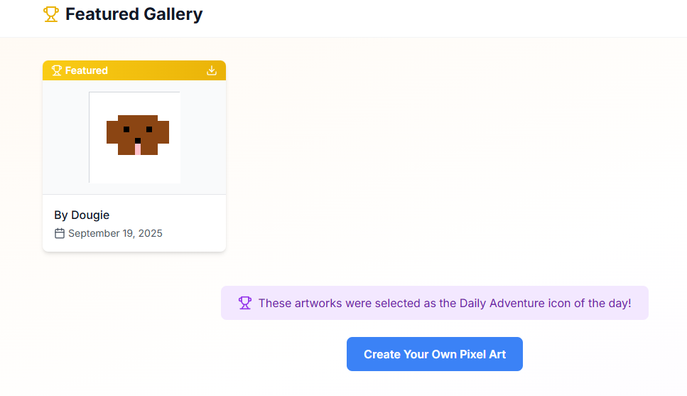 Create your pixel art using the 16x16 grid and colour palette. You can make as many as you like - there's no limit on submissions. When you're happy with it, submit it to the gallery. From there, it joins the rotation and will be featured as the daily icon when it's randomly selected.
